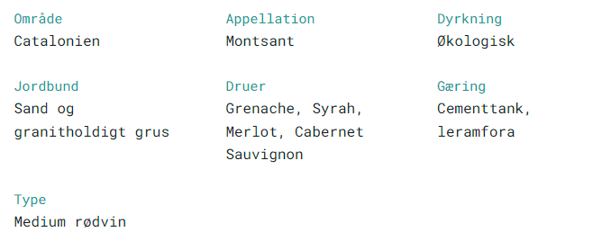 Sarah Perez og Rene? Barbiers fælles ”barn” i Montsant har de døbt ”Venus la Universal”. Det er de to Priorat-koryfæers tøjlesløse entusiasme og kærlighed til den lokale mangfoldighed af gode mineralholdige vinmarker, der har ledt dem til nabodistriktet. Herfra fremelsker de nye reference-vine for området. Med deres økologiske hands-off mentalitet og forkærlighed for udtalt elegance, viser de Montsants enestående skifer og granit terroir gennem primært Grenache og Carignan druer.